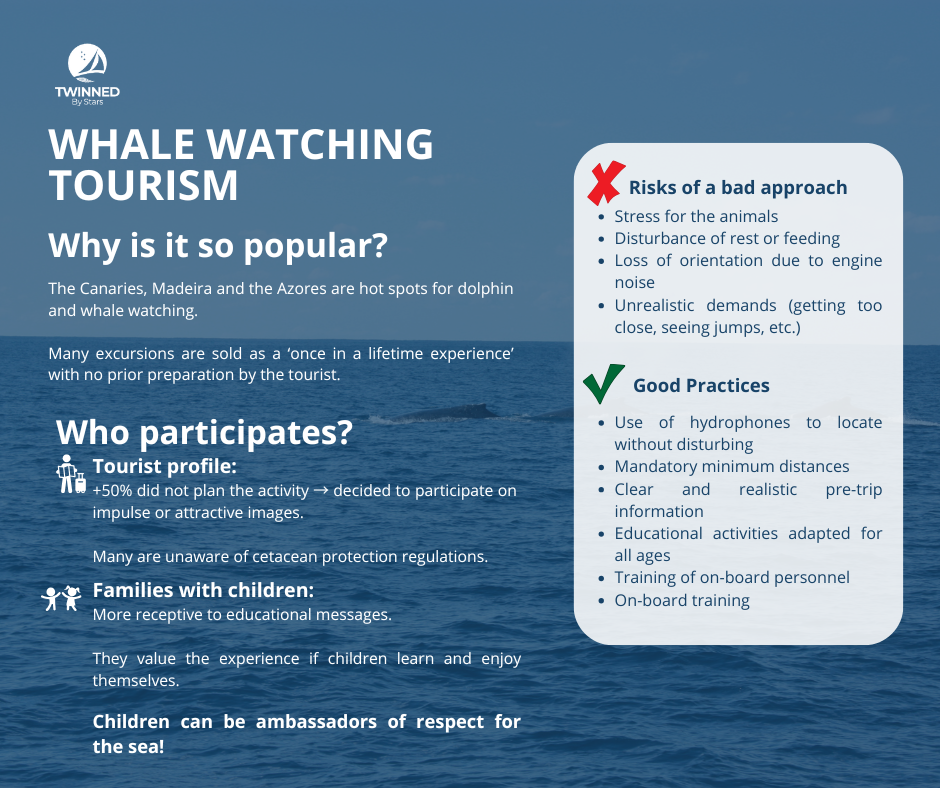 Among TWINNEDbySTARS' initiatives, the project promotes astronomy as a distinctive and high-value tourism resource, encouraging diversification and deseasonalisation of maritime offerings. It also contributes to raising awareness about biodiversity, as learning about the stars helps us understand how artificial light can affect marine and terrestrial life, including ourselves. This approach was highlighted in our collaboration with SEO BirdLife during the Marine Starguide Training course.